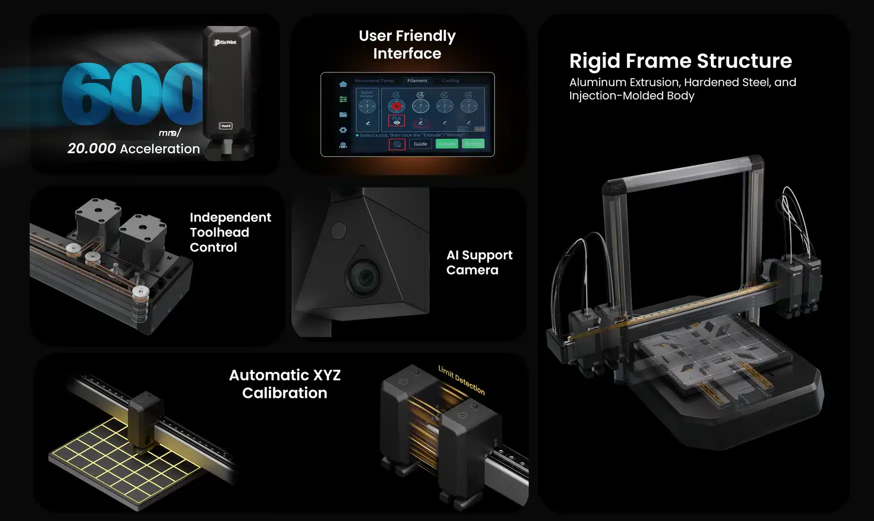 Dazu kommen weitere Features wie eine KI-Kamera, ein laut Herstellerangaben benutzerfreundliches Interface sowie eine Druckgeschwindigkeit von bis zu 600 mm/s.