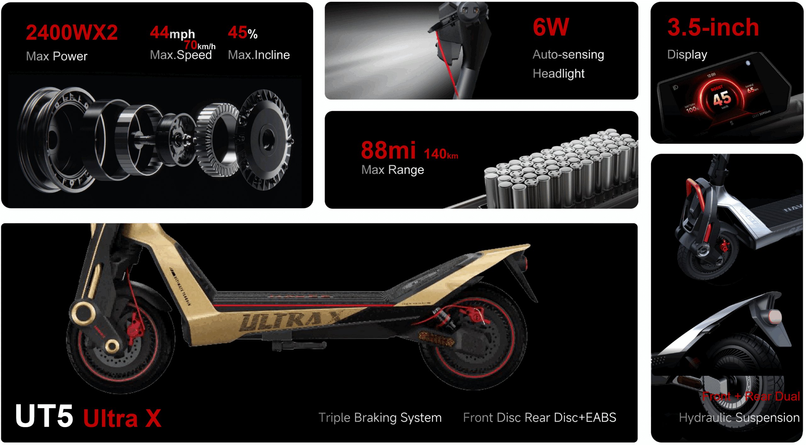 Der NAVEE UT5 Ultra X zeigt der Welt aber immerhin, was technisch gerade möglich ist. 70 km/h Spitze, ein riesiger Akku, Allrad-Antrieb und smarte Features bis hin zur Apple-Integration sind mit dabei.