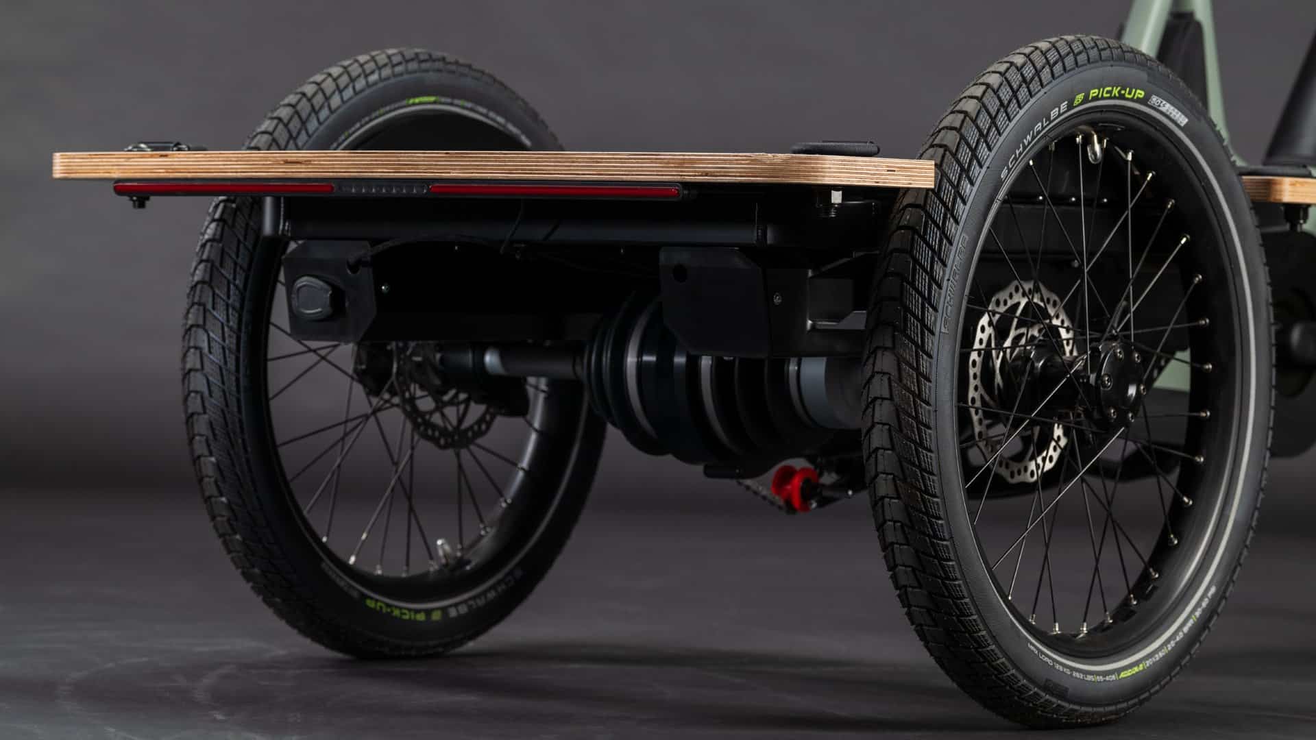 Möglich wird dies durch ein Gleichlaufgelenk, welches zwei Kettenkreisläufe voneinander trennt. Wie bei einem Auto müssen außerdem die beiden Hinterräder in Kurven in unterschiedlicher Geschwindigkeit rollen. Entsprechend hat Cube auch ein Differenzial in dem Trike verbaut.