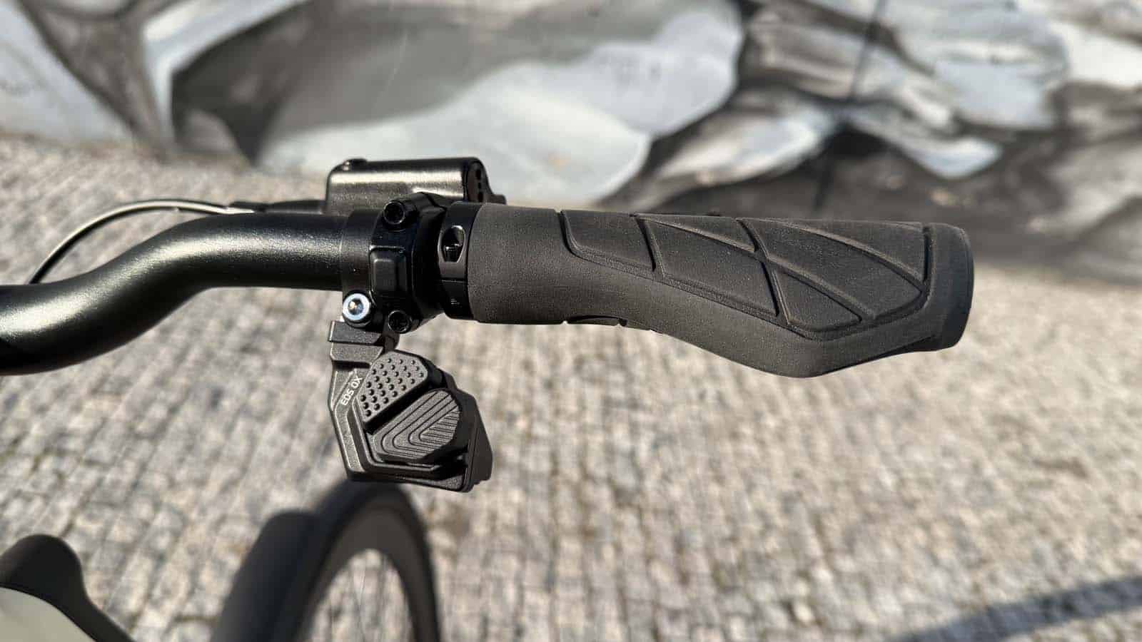 Doch bereits am Cockpit fällt eine der wesentlichen Neuerungen sofort ins Auge. Neben den dezenten, kleinen Tastern für die Hupe oder die Steuerung der Unterstützungsstufe haben sich an der rechten Seite des Lenkers zwei neue Taster eingeschlichen: Die kabellose Steuerung der neuen elektrischen Automatikschaltung.