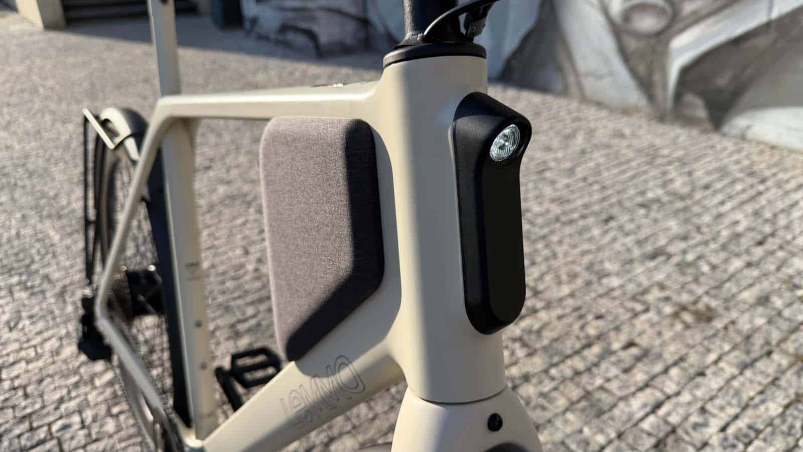Der Rahmen ist für ein urbanes E-Bike typisch sehr clean gehalten. Kabel und Leitungen verschwinden im Inneren des Bikes. Die Verarbeitung ist generell hochwertig: Schweißnähte sind nicht erkennbar und die Frontbeleuchtung ist elegant am Steuerrohr integriert. Hier wirkt alles durchdacht.