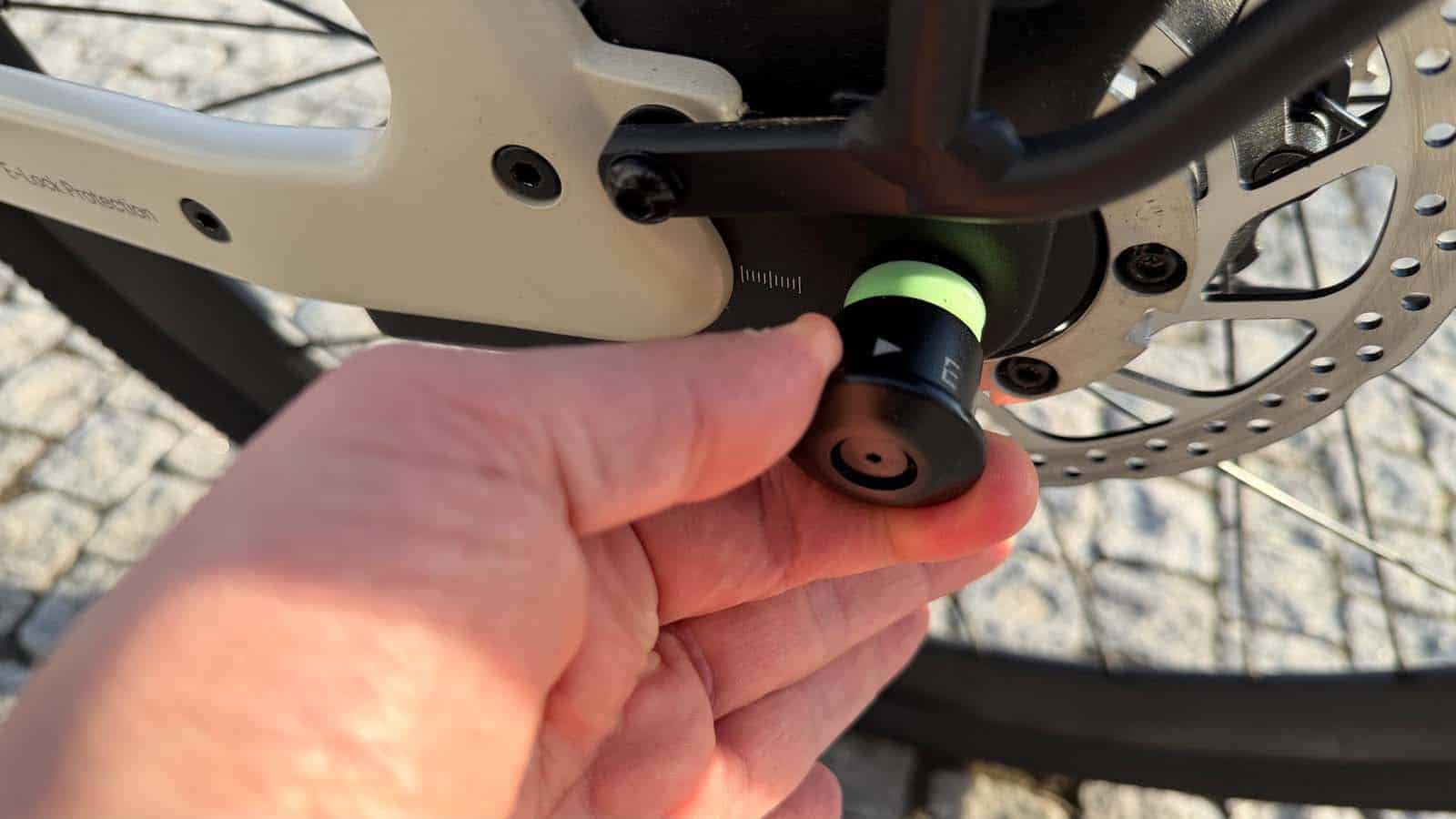 Besonders praktisch ist das Sperren und Entsperren des Lemmo One Collab.Ride über die App. Mit einem Wisch über das Display lässt sich das Smartpac nicht mehr entfernen und der Motor blockiert das Hinterrad. Die (Ent-)Sperrung ist auch ohne App möglich, indem die Taster an beiden Lenkerseiten gedrückt werden. Dadurch kann jedoch theoretisch jeder, der sich mit der Funktionsweise auskennt, das E-Bike aktivieren.