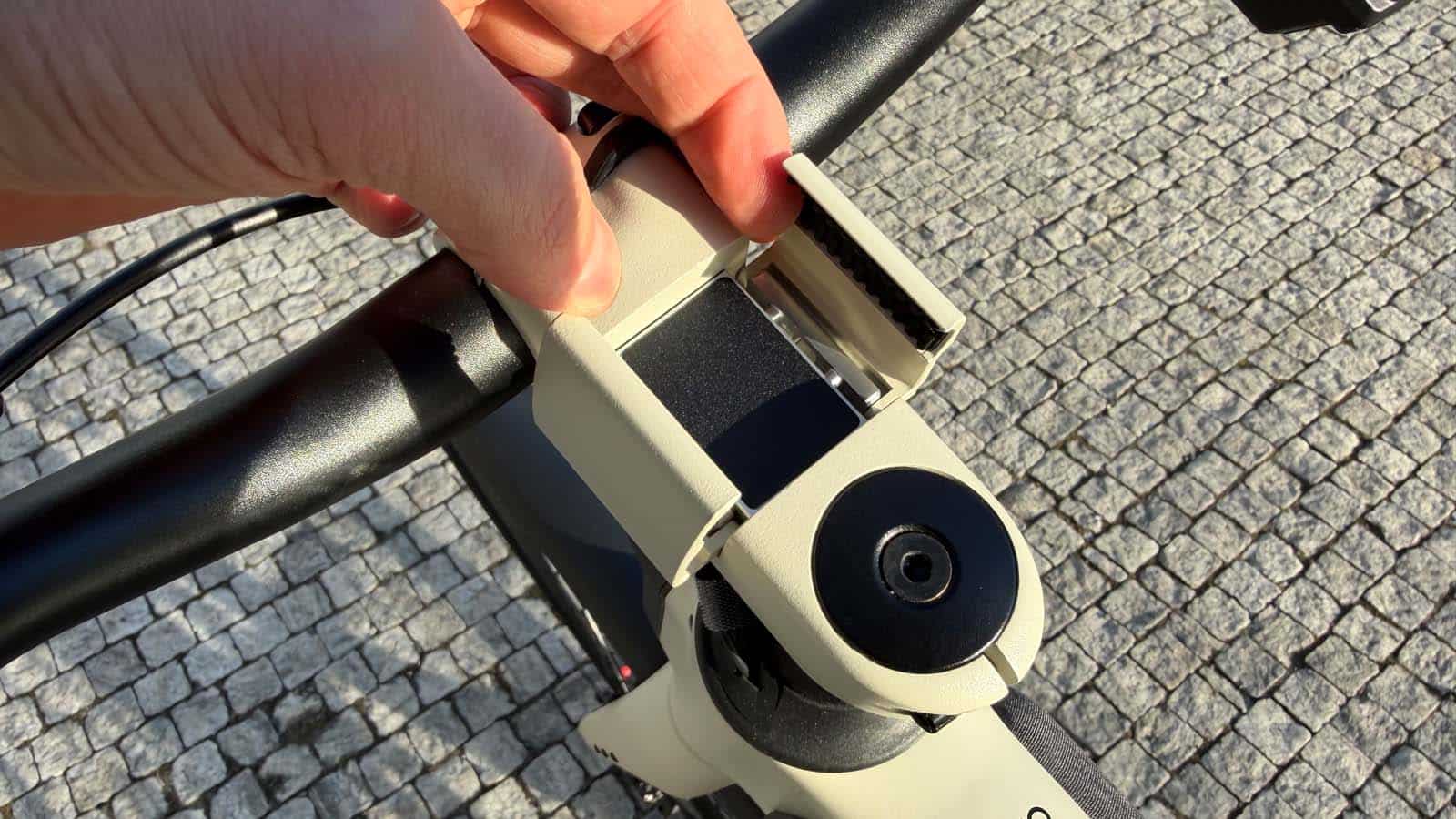 Auch das Cockpit ist clean gestaltet: Das Display ist nicht am Lenker untergebracht, sondern im Oberrohr integriert. Für mehr Infos während der Fahrt bietet das Lemmo eine integrierte Smartphone-Halterung, die sich mit ein wenig Übung mit einer Hand aus dem Vorbau ausklappen lässt.