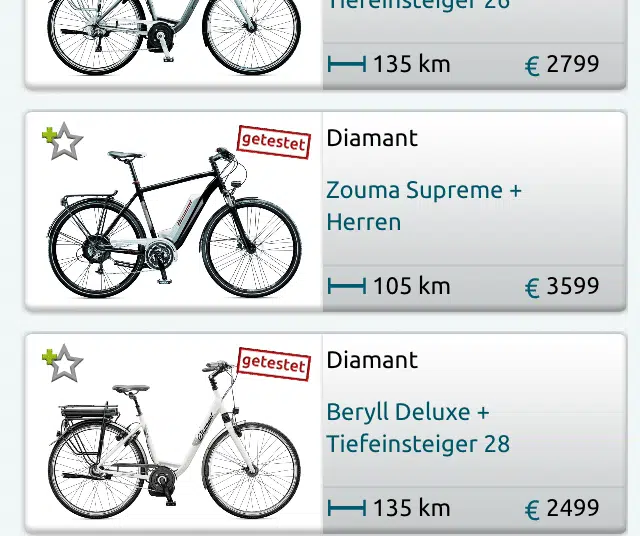 Neben der Website bietet auch die kostenlose iOS-App diese neue Suchfunktion. Der eBikeFINDER beinhaltet annähernd alle auf dem Markt verfügbaren Elektrofahrräder. Eine Kaufberatung zeigt Einsteigern über zehn einfache Fragen, welche E-Bikes für ihren Zweck infrage kommen.