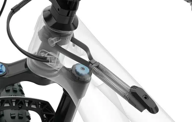 Noch profitieren E-Biker nicht von dem neuen K.I.S. Assistenten, da das System zunächst exklusiv in dem neuen Spectral Modell verbaut wird. Es dürfte jedoch nur eine Frage der Zeit sein, bis Canyon die neue Technologie auch in einem E-Bike verbaut. In den aktuellen 2023er Modellen ist es jedoch noch nicht geplant. In dem System scheint viel Potenzial zu stecken, denn auch hinsichtlich des Gewichts wirkt sich K.I.S. kaum negativ auf das Mountainbike aus, denn das System bringt gerade einmal 110 Gramm auf die Waage. Interessant ist, dass die Polymerfaser-Bänder, die im System verbaut sind, augenscheinlich die gleichen sind – oder zumindest ähnliche –, die auch bei Wintergarten-Beschattungsanlagen oder ähnlichem verbaut werden.