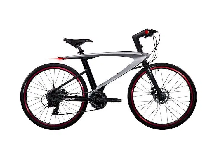 Toll sind aber besonders die Funktionen, die dem Bike einen Mehrwert verschaffen. So sind beispielsweise an den Lenkerenden Blinklichter integriert, die man mit einem Daumendruck an- und ausstellt. Automatisch schaltet das Super Bike die in den Rahmen integrierten Vor- und Rücklichter an, sobald der Lichtsensor dunkle Umgebung erkennt. Außerdem projizieren zwei Laser links und rechts vom Rad eine rote Linie auf den Boden. Diese signalisiert dem restlichen Verkehr und einem selbst den richtigen Sicherheitsabstand.