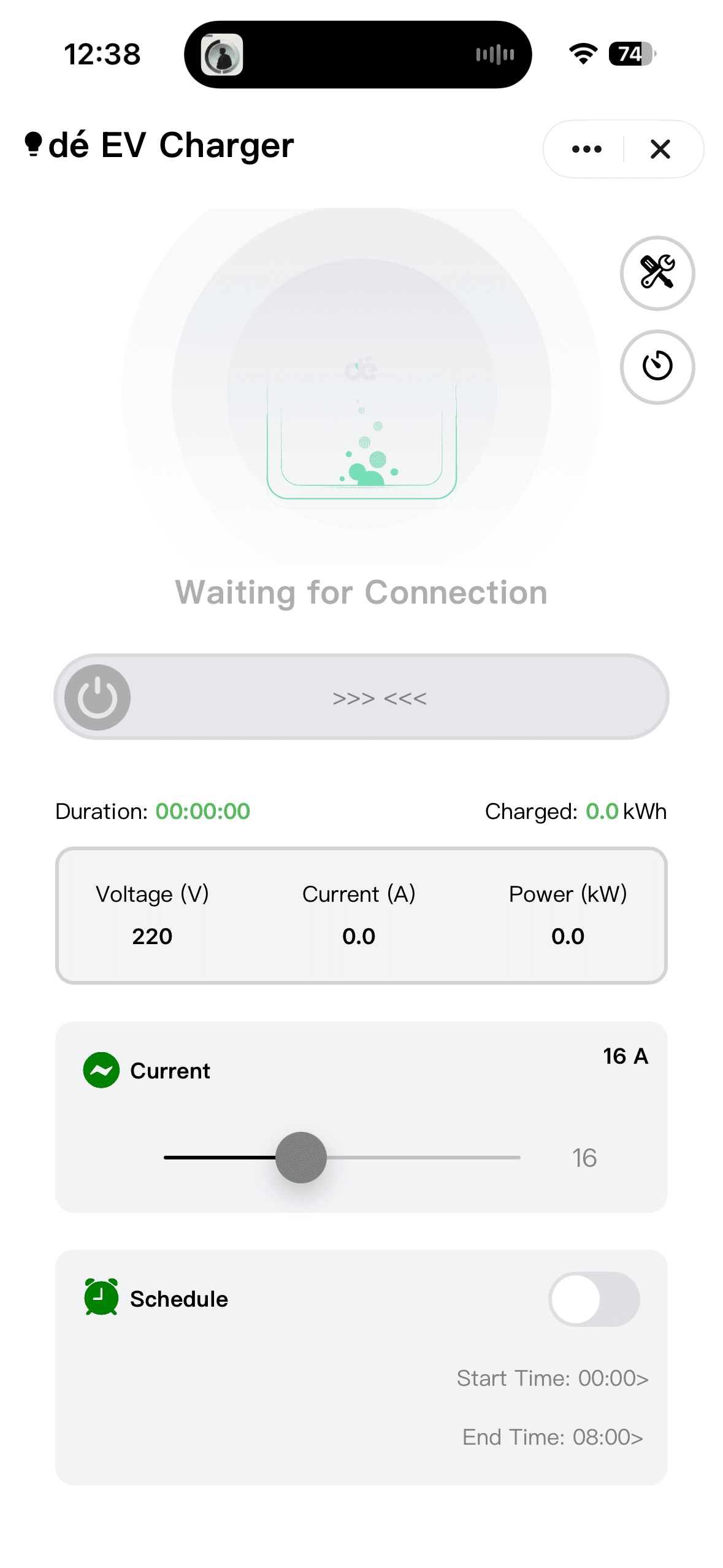 Danach zeigt die App alle interessanten Werte wie Ladestatus, Ladezeit, geladene Kilowattstunden, Spannung, Stromstärke und aktuelle Leistung an. Außerdem lassen sich Ladestrom und Zeitplan anpassen, der RFID-Modus aktivieren und die Ladehistorie einsehen.