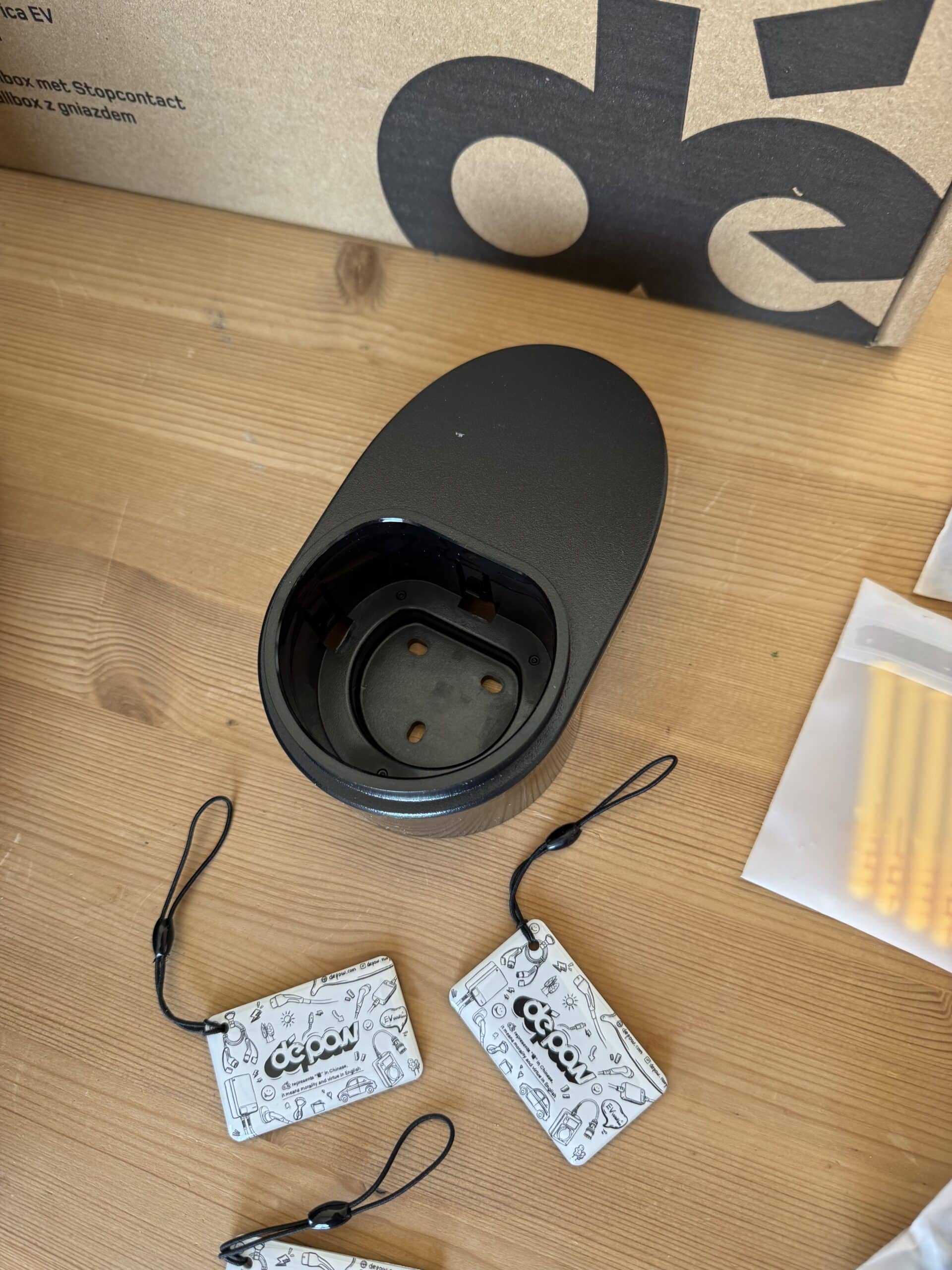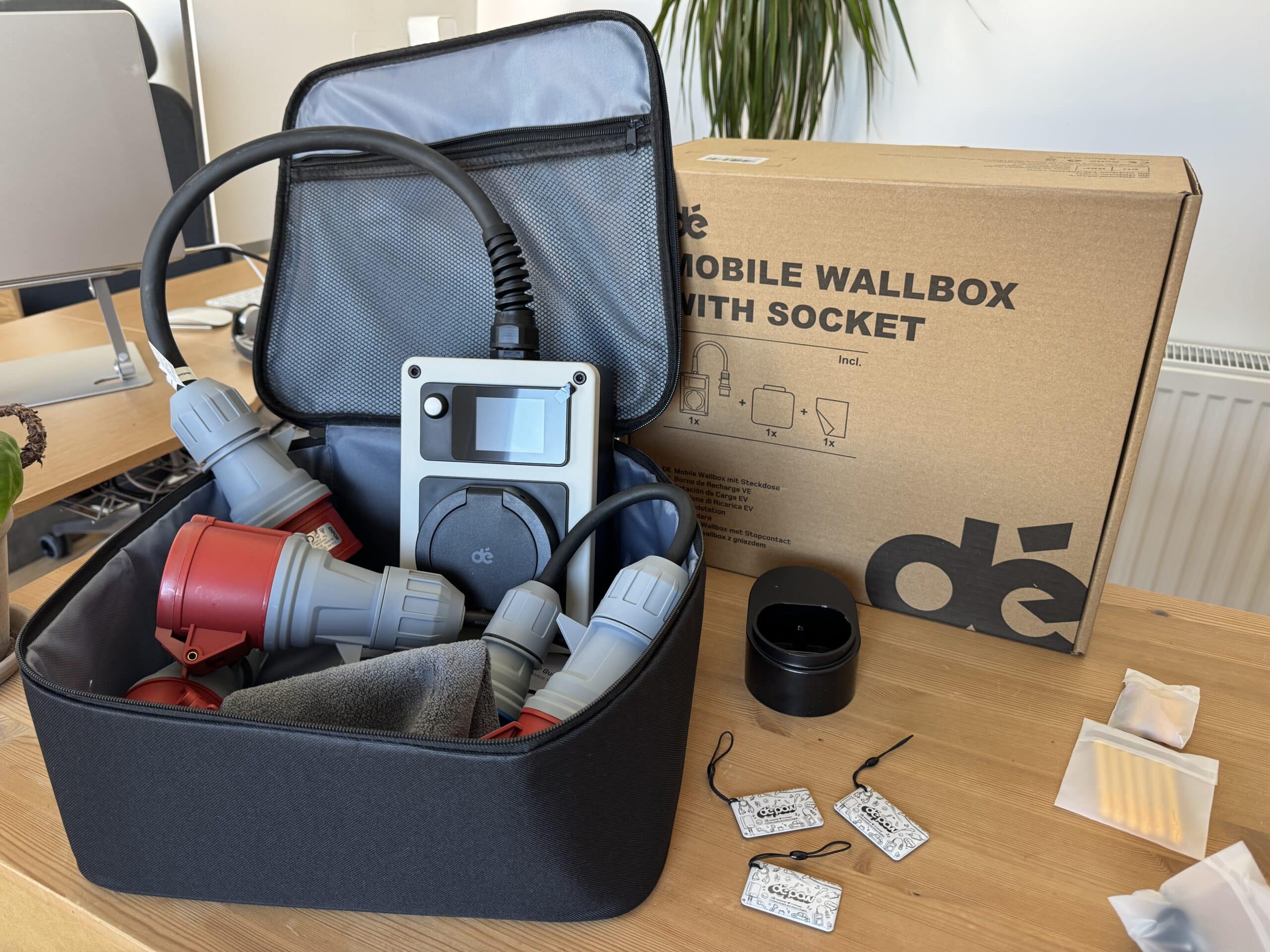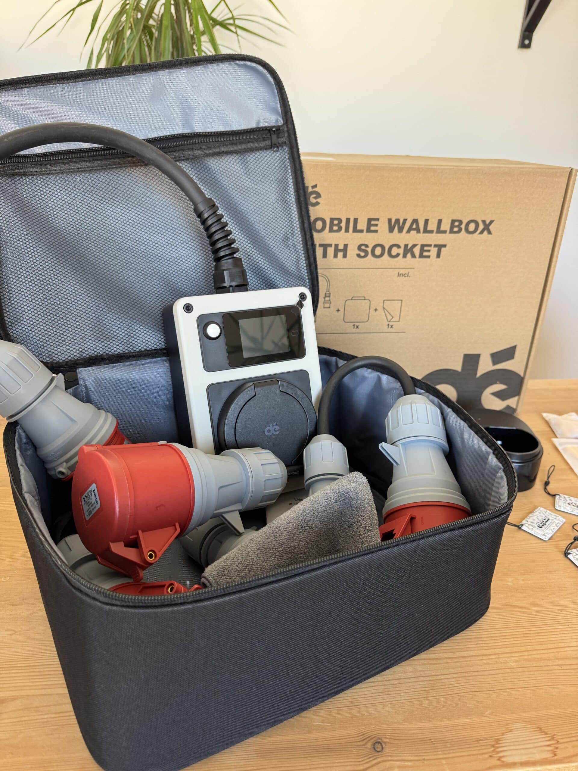 Der Lieferumfang kann sich sehen lassen. In meinem Testpaket lagen nicht nur Montagematerial, Halteplatte und 3 RFID-Chips, sondern auch eine separate Halterung für einen Typ-2 Stecker. Das ist kein spektakuläres Feature, im Alltag aber die Art von Detail, die eine Ladeecke in der Garage aufgeräumt hinterlässt. Für eine vergleichsweise günstige mobile Wallbox ist das Paket daher auffallend komplett.