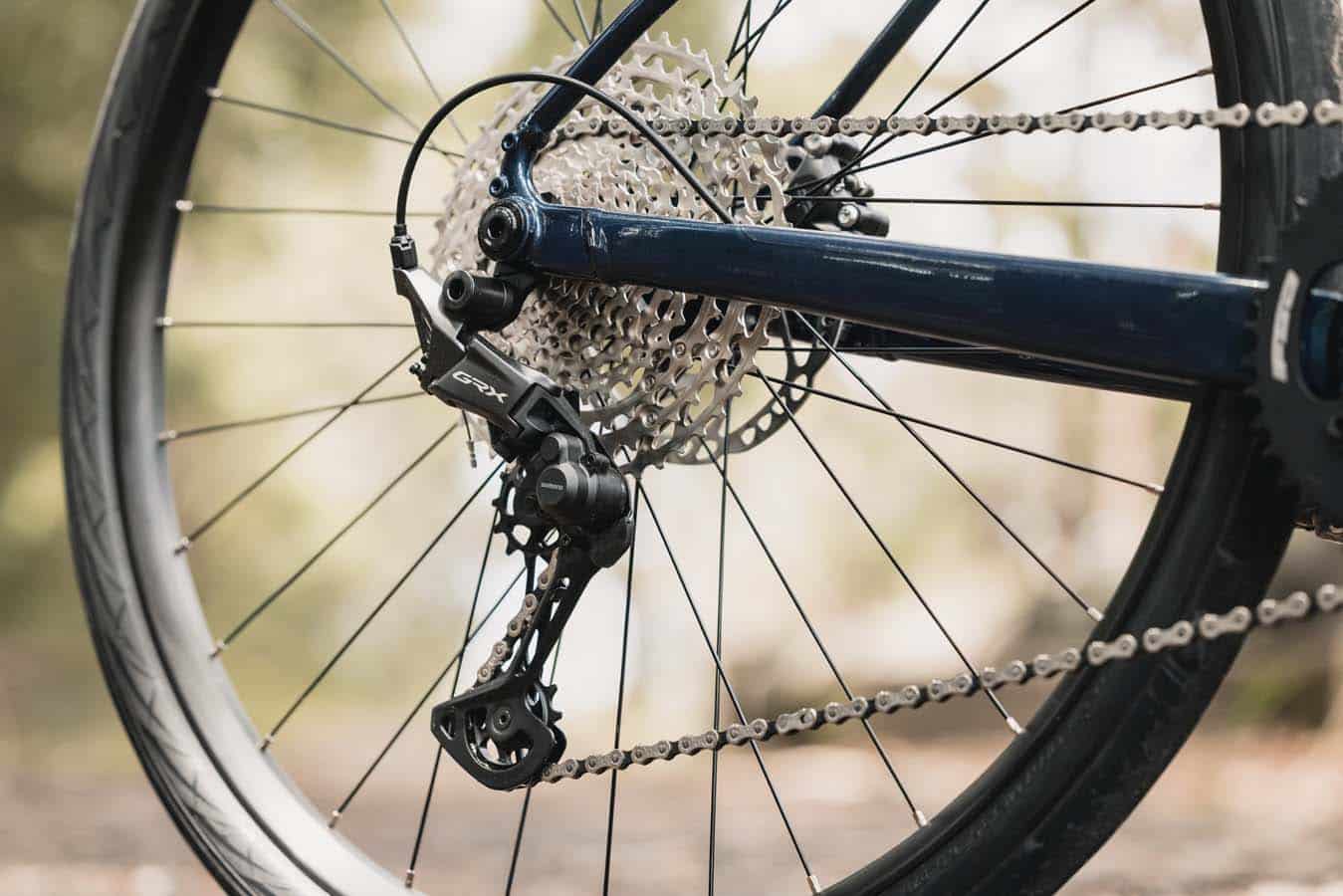 Mit der Shimano GRX-Serie setzt Marin Bikes auf hydraulische Scheibenbremsen und eine 12-Gang-Schaltung, die extra an die Ansprüche von Gravel-E-Bikes angepasst sind. Bei der Version Lombard E2 gibt es sogar die elektrisch gesteuerte Di2-Schaltung ans Rad. Außerdem lässt sich die Sattelhöhe dort durch den Dropper Post per Knopfdruck anpassen.