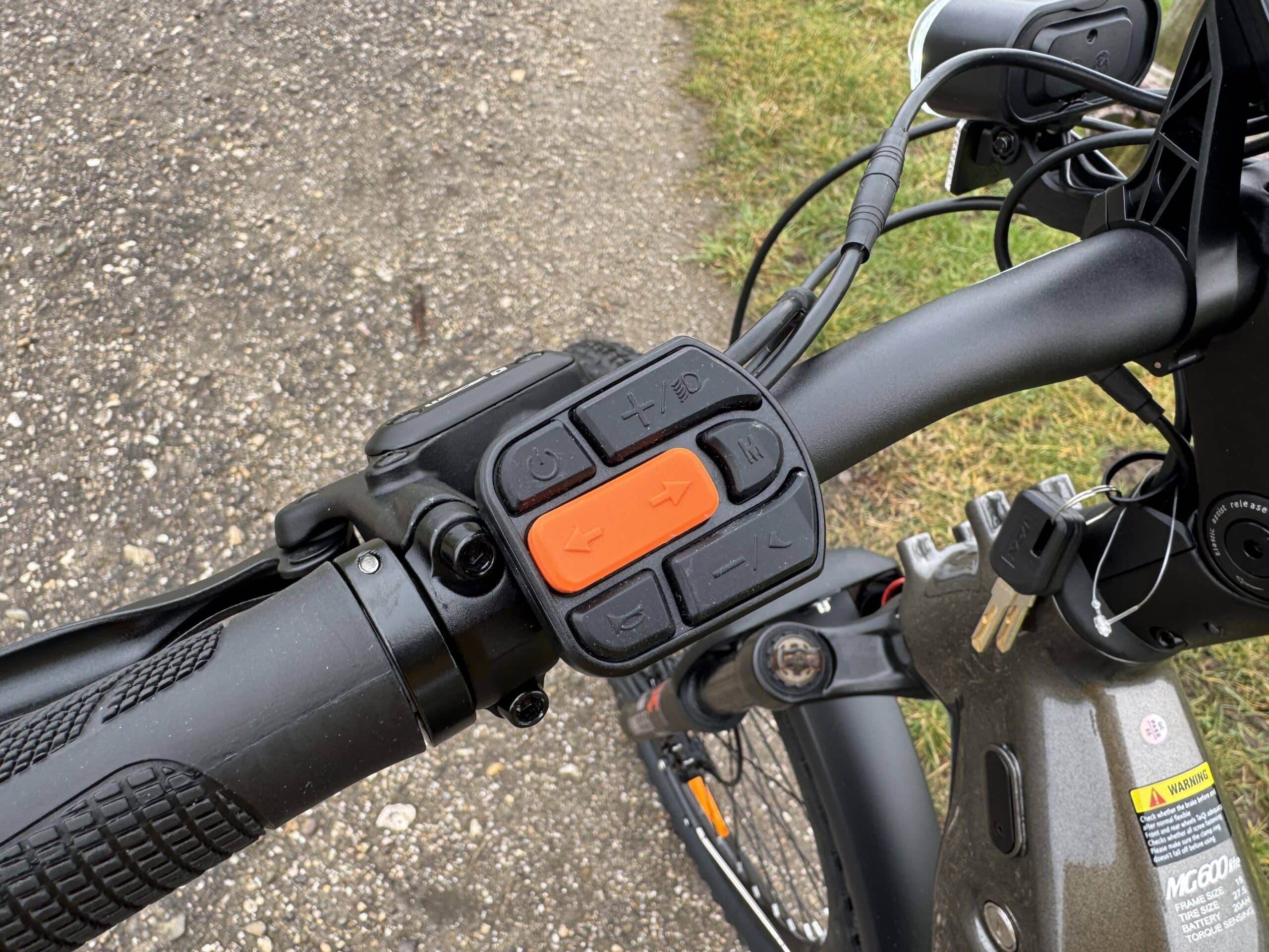 Die Remote-Einheit für die Bedienung ist in diesem Kontext funktional, jedoch nicht perfekt. Die Tasten für den Wechsel der Unterstützungsstufen liegen hinter den Blink- und Hupentasten, was dazu führt, dass man hier übergreifen muss. Gelegentlich kommt es also vor, dass man beim Wechseln der Unterstützung zusätzlich die Aktivierung des Blinkers erwischt. Nicht dramatisch, bietet aber grundsätzlich Verbesserungspotenzial.