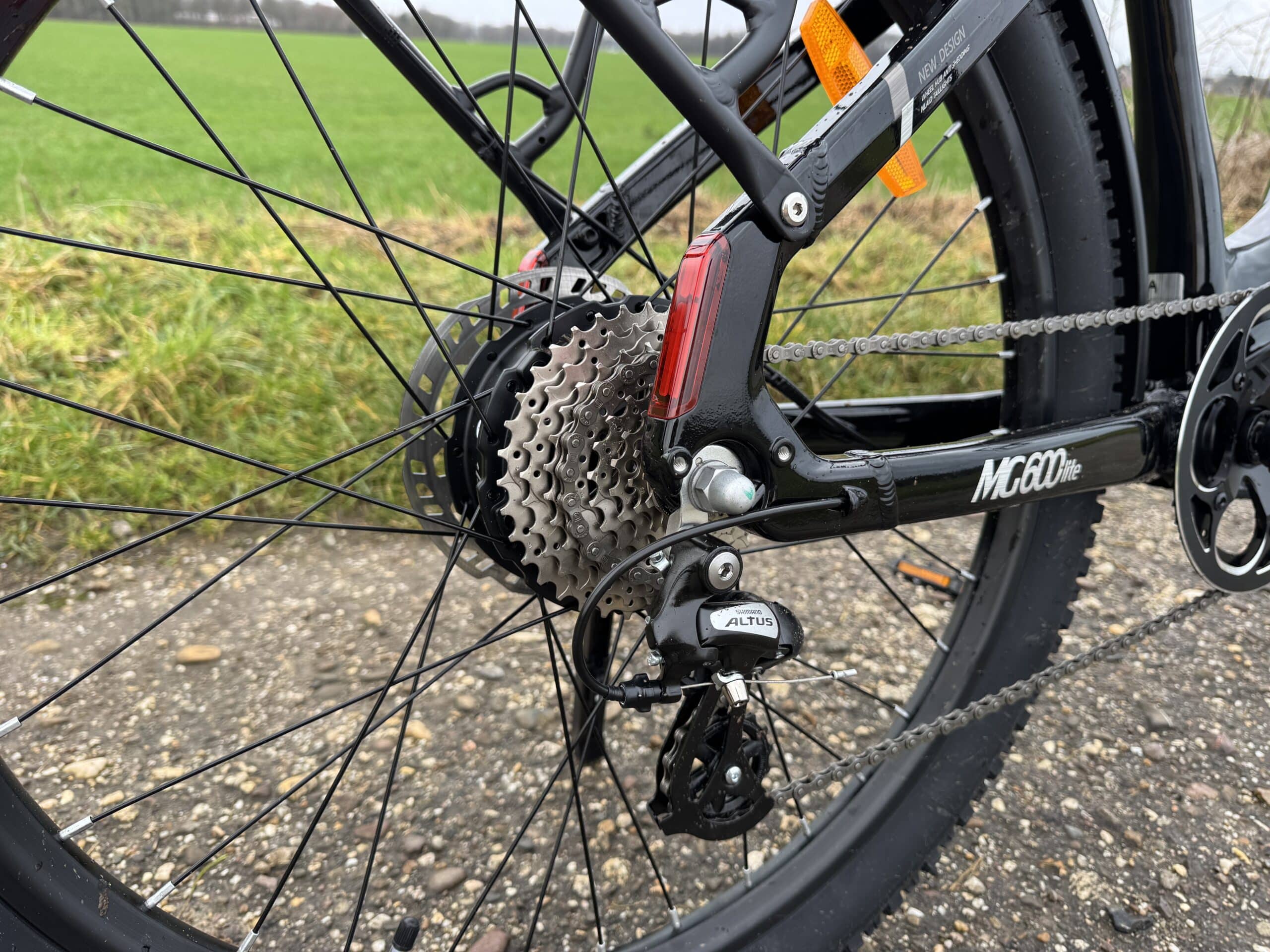 Die verbaute Shimano-Schaltung aus der Altus-Reihe ist bewährt und macht sich auch am MG600 Lite sehr gut. Die Schaltvorgänge sind knackig und direkt, auch die Übersetzung ist für das SUV-Bike passend gewählt.