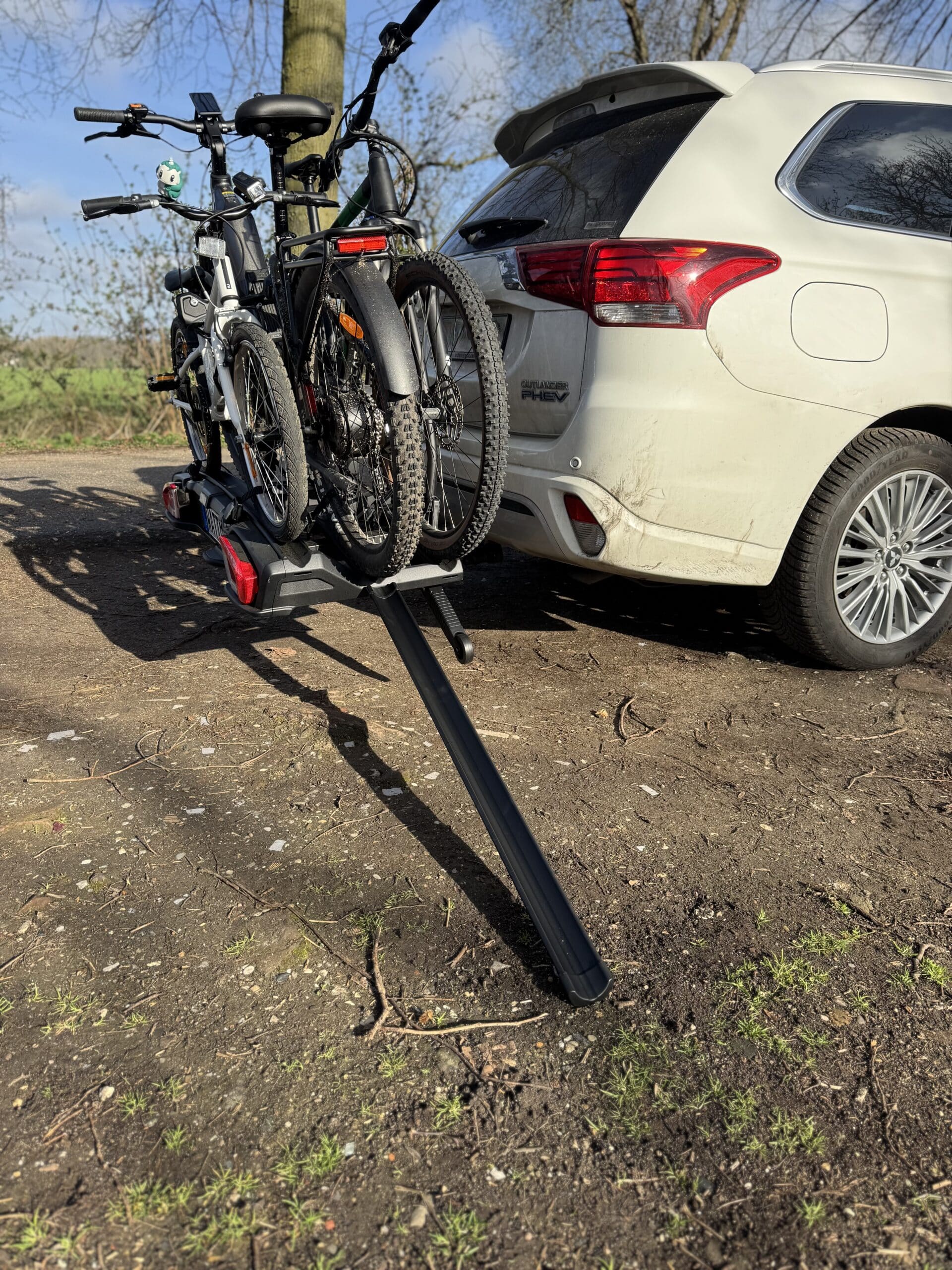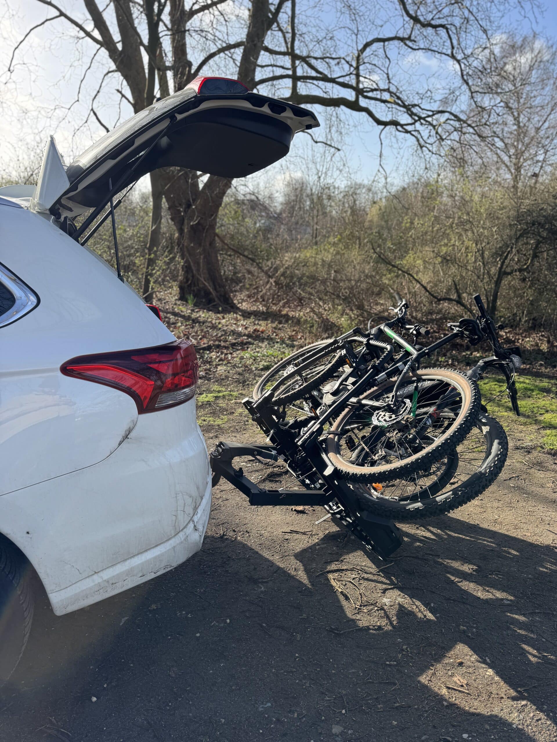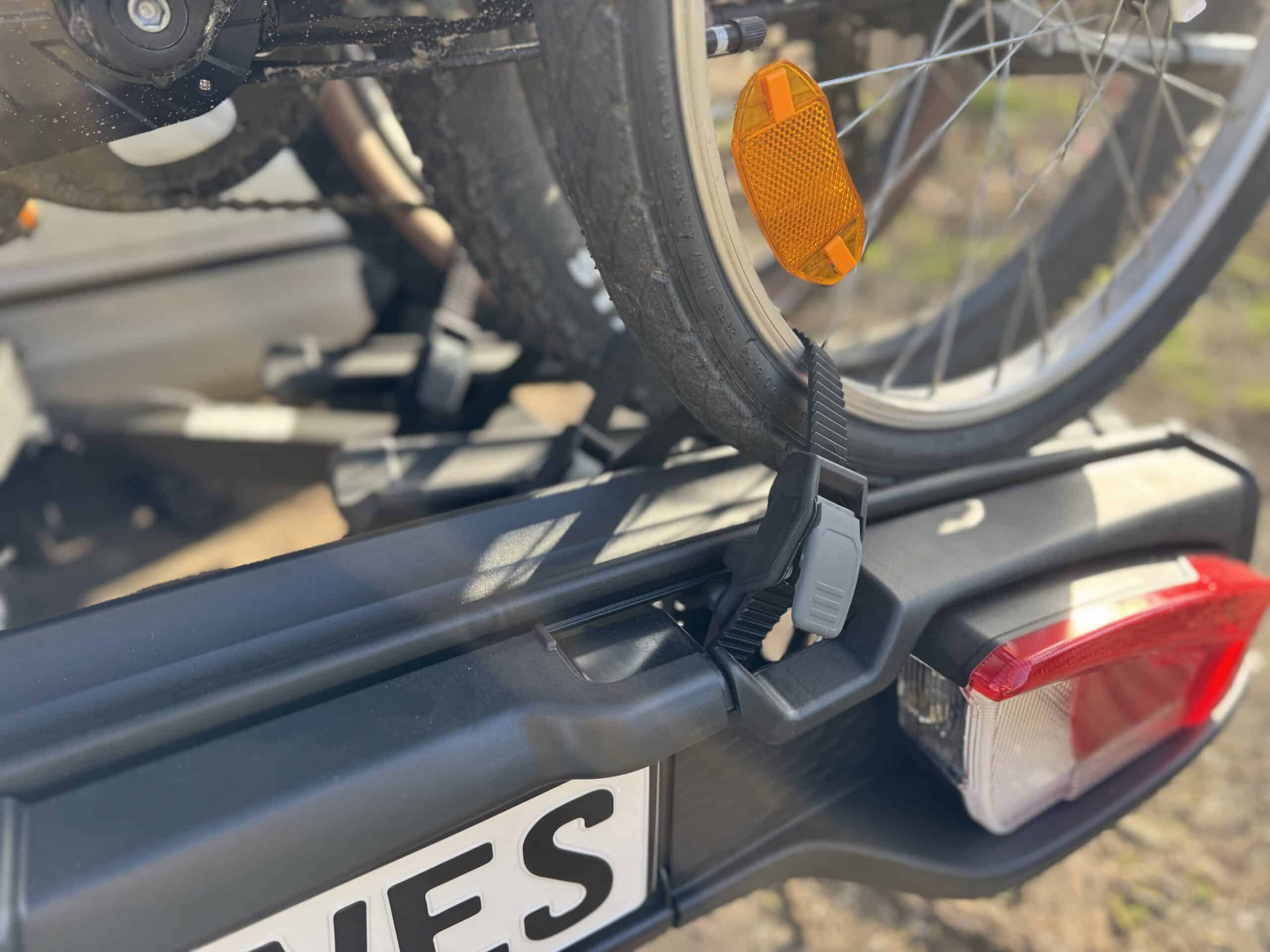 Das war in meinem Fall besonders interessant, weil mein Auto eine abnehmbare Anhängerkupplung hat. Hier würde ich eher zusätzliches Spiel erwarten. Stattdessen wirkte der Träger fest und vertrauenerweckend. Ein Testbike brachte mit Akku bereits rund 34 kg auf die Waage und lag damit über dem offiziellen Grenzwert. Das ist zwar keine Empfehlung, zeigt aber, wie massiv das System konstruiert ist. Wer regelmäßig schwere E-Bikes bewegt, merkt daher schnell, warum der VeloSpace 3 eher nicht in der 300-Euro-Klasse spielt.