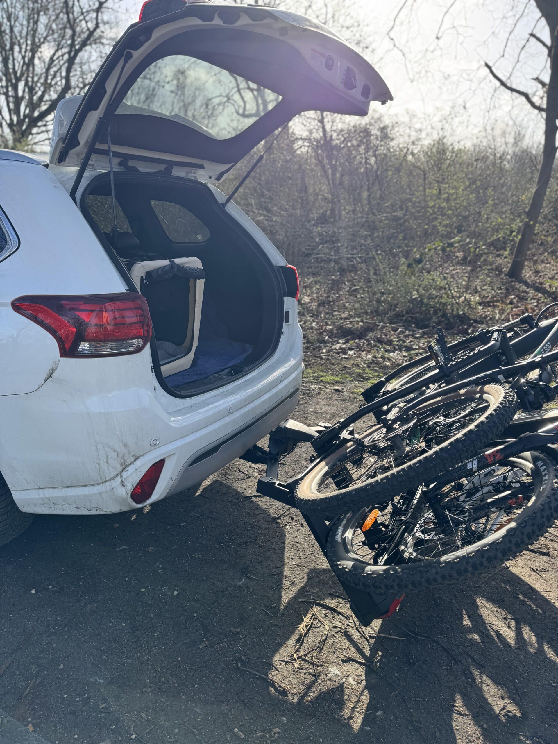 Das klingt für einige vielleicht banal. Meine Erfahrung mit anderen Kupplungsträgern zeigt aber, dass das nicht immer so sein muss. Viele Fahrradträger schaffen den Kofferraumzugang nur im Prospekt. Denn häufig klappen solche Träger ziemlich direkt an der Kupplung weg, weshalb oft nicht wirklich viel Platz bleibt. Der Thule VeloSpace 3 schafft dagegen wirklich Platz am Kofferraum, wodurch dieser noch tatsächlich nutzbar bleibt. Selbst der Hund kann hier noch entspannt ein- und aussteigen.
