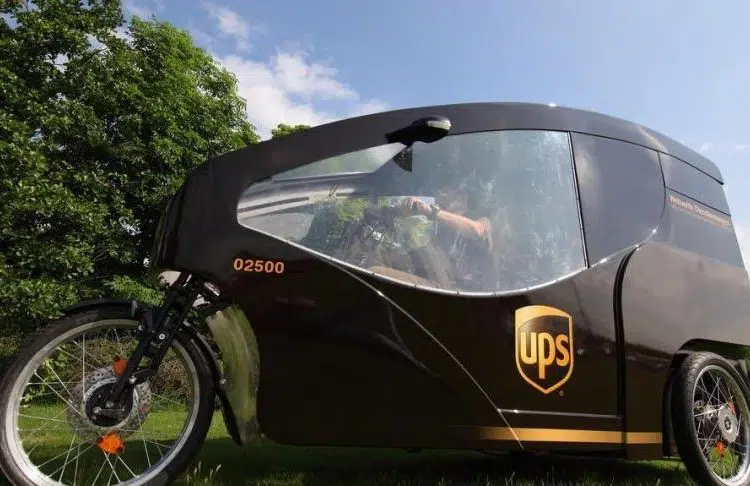 In Basel experimentiert der Lieferdienst-Riese aus Atlanta mit einem elektrischen Dreirad, das insgesamt Ladung bis zu 150 Kilo transportieren kann. Der geschlossene Laderaum verfügt über ein Volumen von 1,5 Kubikmeter. Das weniger als ein Meter breite Gefährt wiegt 115 Kilogramm, einschließlich der 250Wh Batterie. Sein kompaktes Design macht es zum idealen Transportmittel für die engen Gassen europäischer Städten.