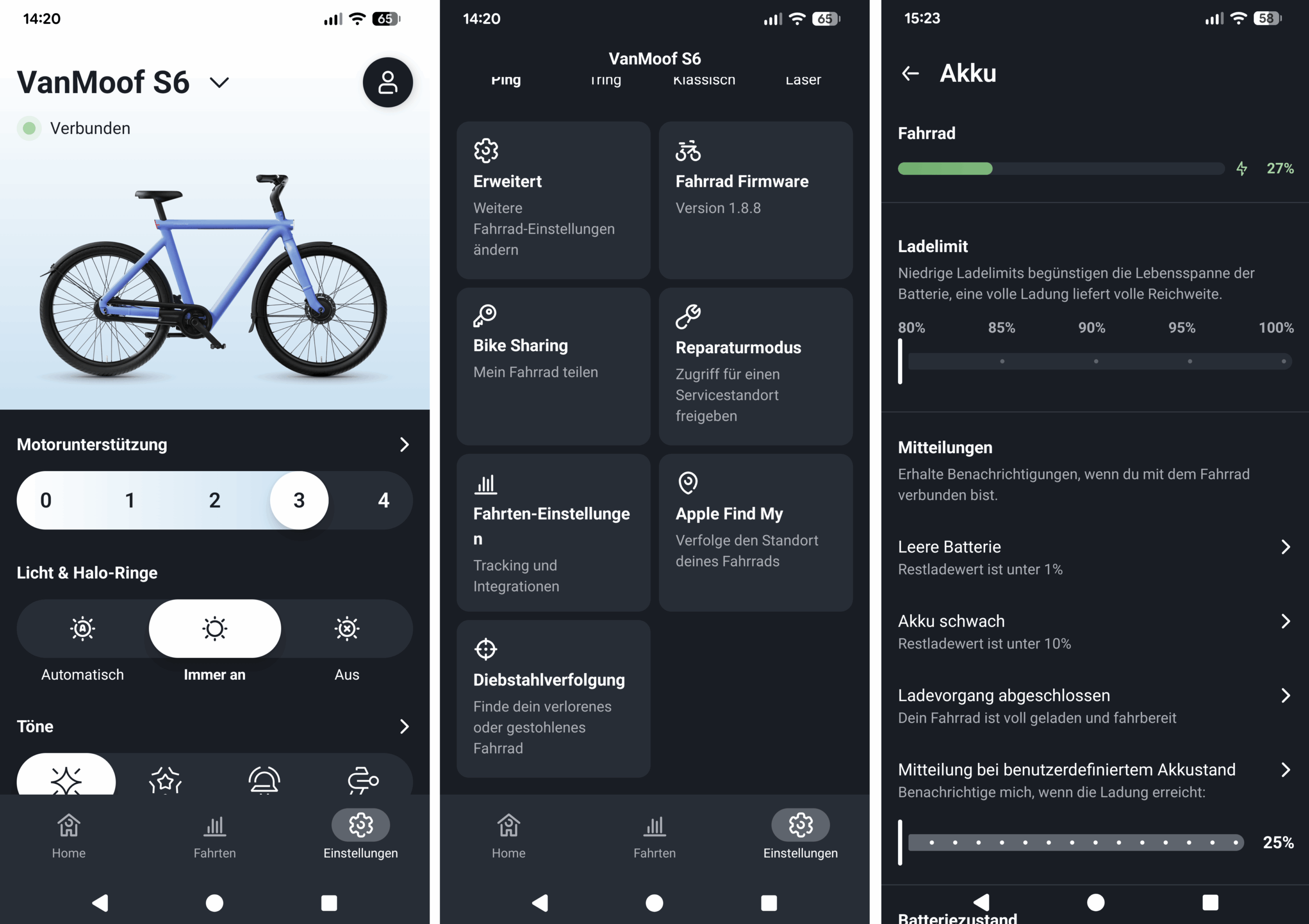 Ergänzend dazu bietet VanMoof ein „Ride Pro“-Abo an. Es erweitert die eigene App um zusätzliche Funktionen wie detaillierteres Tracking, erweiterte Diebstahlinformationen und perspektivisch auch Navigationsfunktionen mit Lichtsignalen über die Halo-Ringe. Das Abo ist optional und kostet als Einführungspreis 4,99 Euro monatlich oder 49 Euro jährlich. Danach steigt der Preis auf 9,99 Euro/Monat oder 99 Euro/Jahr.