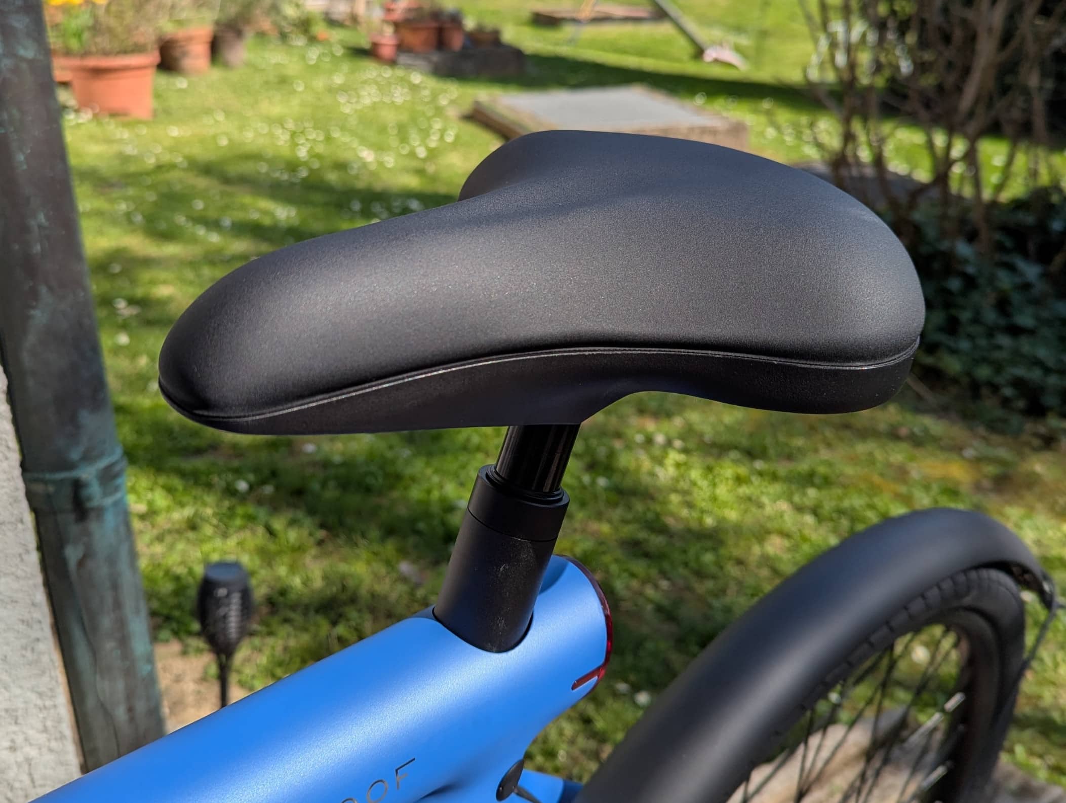Die gefederte Sattelstütze verbessert den Komfort spürbar. Kopfsteinpflaster und kleinere Unebenheiten federt sie effektiv ab, ohne das direkte Fahrgefühl zu verfälschen. Sie macht das E-Bike ein ganzes Stück alltagstauglicher und ist als Zubehör zu empfehlen. VanMoof hätte sie auch gerne einfach für alle Kunden als kleines Extra kostenfrei mit in das Paket legen können.