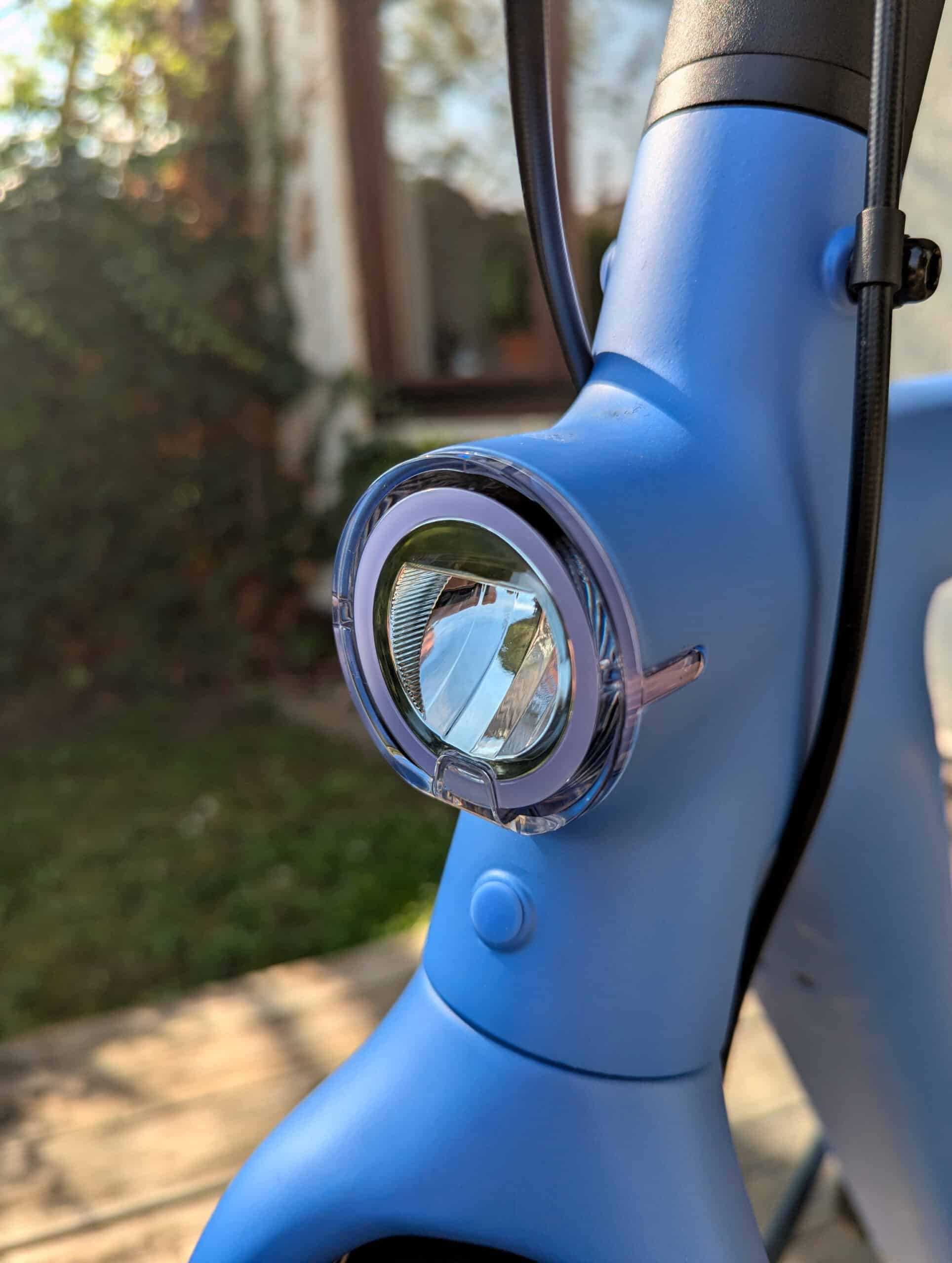 Die integrierte Beleuchtung hingegen birgt Licht und Schatten: Das Frontlicht leuchtet die Fahrbahn gleichmäßig aus und sorgt für gute Sichtbarkeit im Verkehr. Nach oben oder unten verstellbar ist es aber leider nicht. Bauartbedingt leuchtet der Scheinwerfer auch keine Kurven aus, sondern leuchtet zunächst weiter starr geradeaus. Das ist etwas gewöhnungsbedürftig.