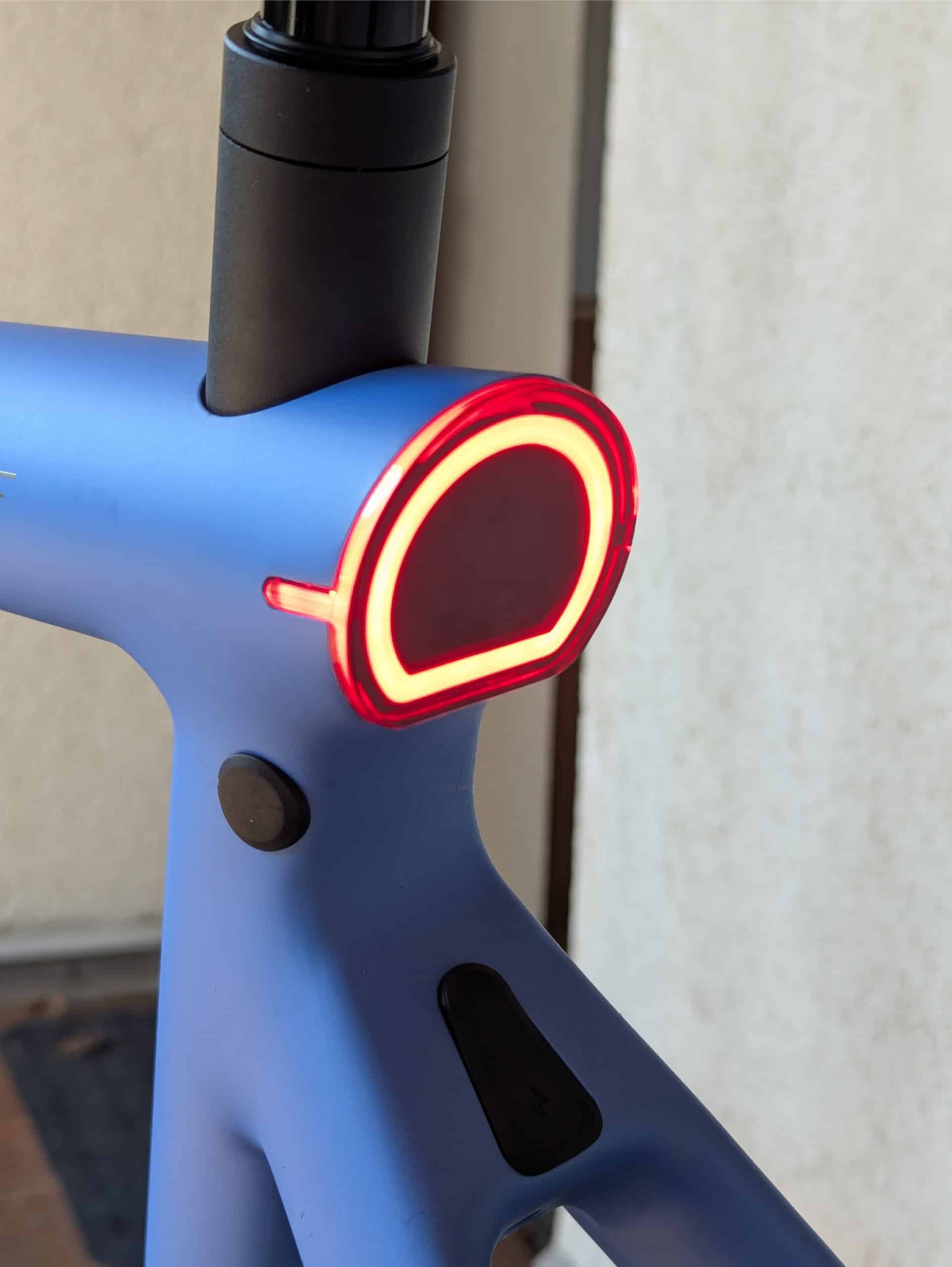 Zur weiteren Ausstattung zählen noch die integrierten LED-Leuchten vorne und hinten, das „Halo-Light“-System (Erklärung weiter unten) zur Anzeige von Geschwindigkeit, Akkustand und Unterstützungsmodus sowie die fest verbaute Smartphone-Halterung von Peak Design. Klassische Displays sind nicht vorhanden.