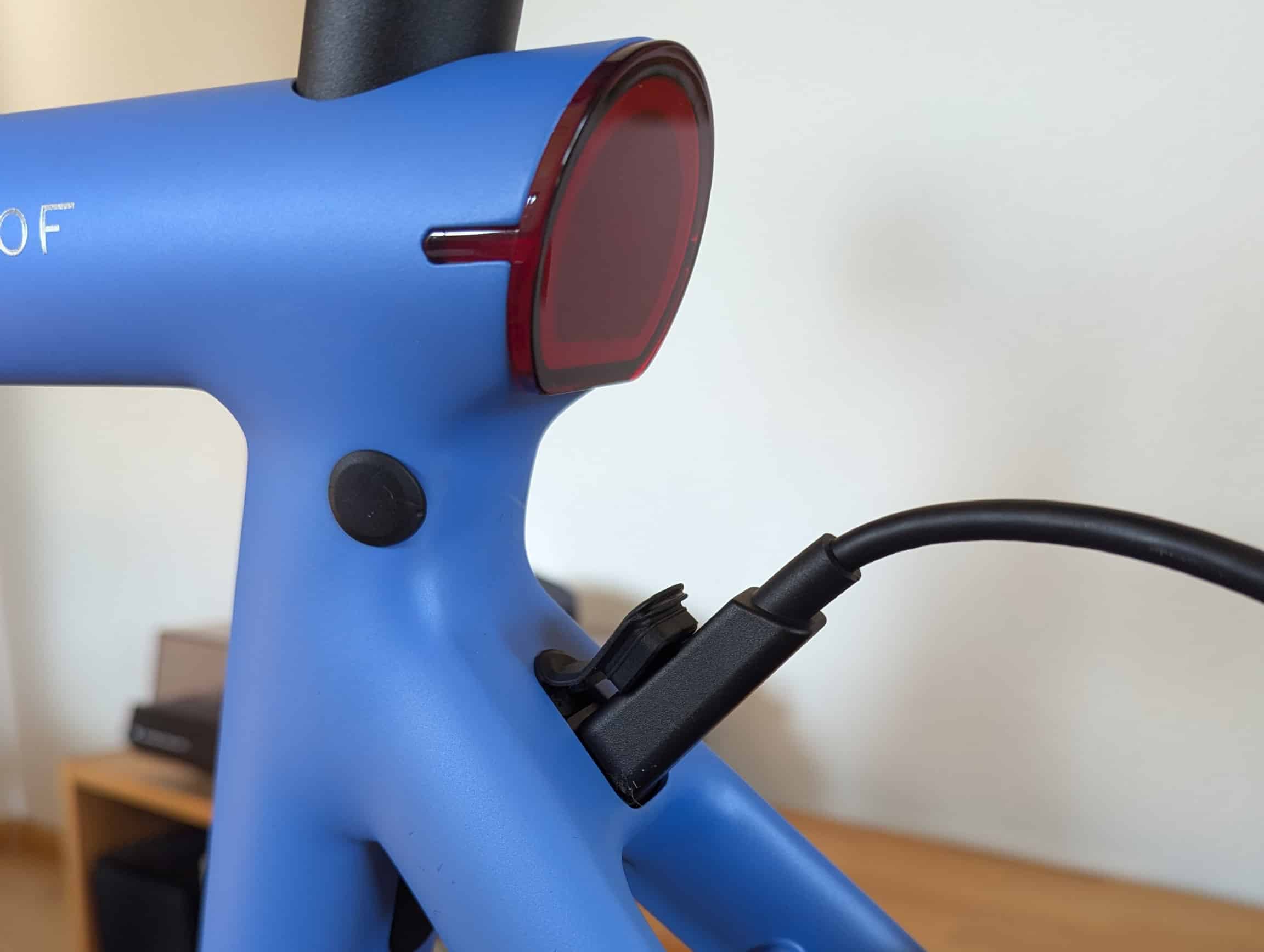 Der Akku ist fest im Rahmen verbaut, das heißt nicht für den schnellen Wechsel vorgesehen. Für manche ist das bereits ein K.o.-Kriterium. Das mitgelieferte Ladekabel ist ca. 3 m lang, so weit darf die Steckdose oder Powerstation also maximal vom E-Bike entfernt sein.