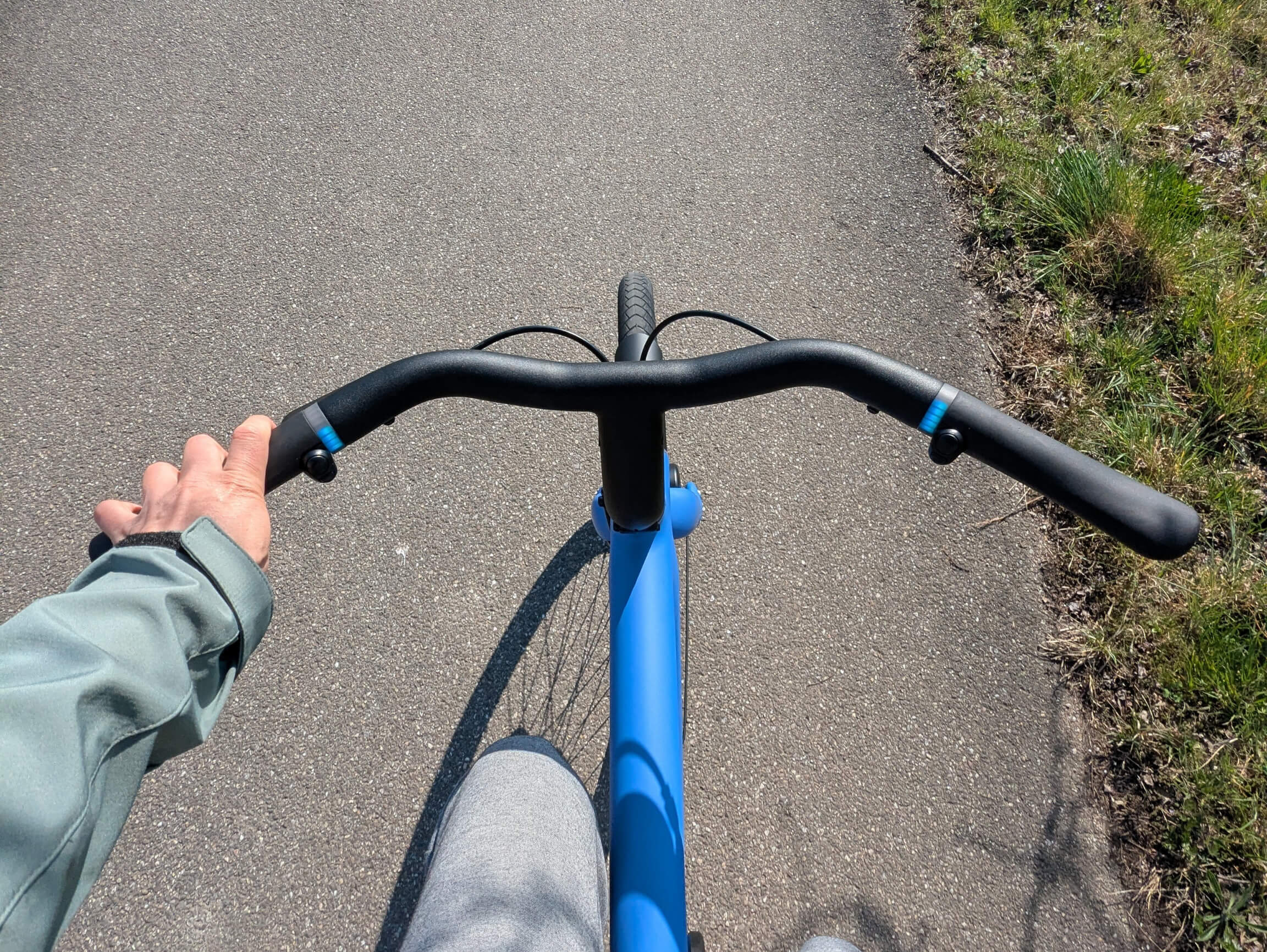 Das Rad fühlt sich trotz seines Gewichts von 23,5 Kilogramm nicht träge an, sondern lässt sich angenehm präzise lenken. Die 27,5 Zoll großen Reifen rollen leise und gleichmäßig. Ihr Profil ist auf gut befestigte Wege ausgelegt und nicht auf Wald und Wiese.