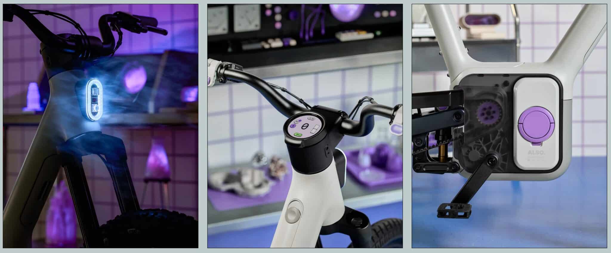 Auch beim Antrieb geht das TM-B einen eigenen, sehr modernen Weg. Statt einer mechanischen Kette setzt Also auf ein „pedal-by-wire“-System. Die Pedale sind zwar weiterhin mit dem Rahmen verbunden, aber nicht direkt mit der Kette. Stattdessen registrieren Sensoren die Tretbewegung und übertragen die Daten elektronisch an den Mittelmotor. Dieser reagiert dann in Echtzeit und gibt passend Leistung ab.
