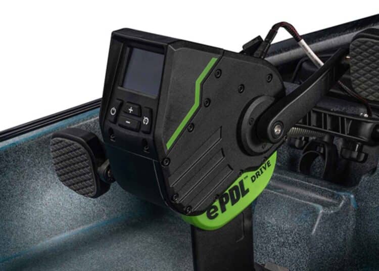 Während E-Motoren immer häufiger an kleinen Schlauchbooten zum Einsatz kommen, geht Old Town nämlich einen Schritt weiter: Der Antrieb funktioniert als ein Hybrid aus Muskelpower und E-Motor. Um voranzukommen, können die Kapitäne die Pedale nutzen und werden dabei vom Elektroantrieb unterstützt. Wie an vielen E-Bikes gibt es zur Unterstützung fünf verschiedene Power-Assist-Modi, die entweder mehr Leistung liefern oder den Akku schonen.